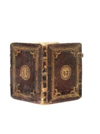 Manoscritto su pergamena in 8vo (205 x 145 mm), [53] carte. Completo. Specchio di scrittura ca. 140 x 100 mm. Testo su una colonna di 25 righe, in grafia gotica in inchiostro bruno, titoli in rosso, un paio di capilettera più grandi in rosso e in azzurro, altri più piccoli in rosso o in azzurro. Incipit in rosso con iniziale floreale policroma su fondo oro, entro ampia cornice figurata, suddivisa in 5 compartimenti figurati, di cui: una grande vignetta in testa che raffigura un vescovo attorniato da suore agostiniane, la cui badessa è ritratta nell’atto di consegnare presumibilmente il presente volume al vescovo; una vignetta in calce che rappresenta due angeli che reggono un tondo con all’interno l’Agnello assiso sulle Sacre Scritture; al margine esterno un piccolo ritratto di uomo anziano che porta la Croce (presumibilmente il Cireneo), con vignette floreali sopra e sotto. Legatura antica in piena pelle riccamente decorata in oro, fleurons ovali al centro dei piatti, quello anteriore con la Crocifissione, quello posteriore con la Vergine e il Bambino, entro cornice floreale con fregi accantonati. Resto di fermagli. Varie tracce del tempo ma generalmente molto ben conservato.