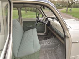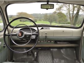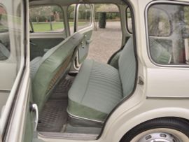 La familiare che vi proponiamo oggi fa parte di queste vetture, e si presenta con una elegantissima verniciatura bianca con tetto verde scuro, che richiama la tappezzeria interna verde. Sicuramente non era, come molte 1100 Familiari delle serie precedenti, adibita ad uso promiscuo o commerciale, ma prettamente turistico, il che spiega anche il suo basso chilometraggio (circa 74,000 km) dai suoi quattro proprietari. La vettura è stata acquistata dal venditore circa quindici anni or sono e sottoposta ad un restauro di carrozzeria e rinnovamento radicale della meccanica: ed infatti ha un gruppo motore/cambio efficientissimo, silenzioso e perfettamente efficiente. Recentissimamente sono stati rifatti i freni e sostituiti i pneumatici.