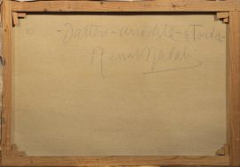 retro: firmato e iscritto "Datteri arrostite e torta", timbri della Collezione Romiti; retro del telaio: iscritto "Mario Romiti"
