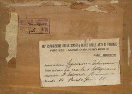 retro: timbro della Collezione Sambalino, cartiglio della 86' Esposizione della Società delle Belle Arti di Firenze