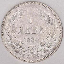 BULGARIA, ALEXANDER I DI BATTENBERG (1879-1886), 5 LEVA 1884