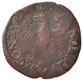Mi gr. 0,82 D/ CESAR OR FR GON D G SAC Testa a s. del Gonzaga R/ NOBILITAS GONZ Aquila coronata CNI 22/28 MIR 196