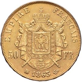 FRANCIA, RIPRODUZIONE IN ORO DEI 50 FRANCHI 1863