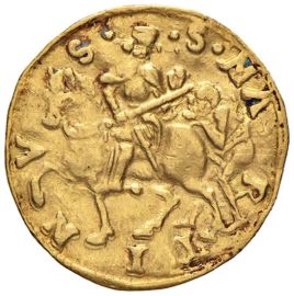 Au gr. 3,47 D/ S VVLTVS DE LVCA Busto del Volto santo drappeggiato; in alto, a s., armetta Balbani R/ S MARTINVS san Martino a cavallo taglia il mantello per donarlo al povero. Bellesia 65/A MIR 169/3 (armetta Balbani)