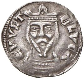 Ar gr. 1,83 D/ OTTO REX Monogramma di Ottone IV; sopra, torsello e, all'esergo, foglia R/ S VVLT D LVCA Mezzo busto del Volto Santo, coronato, di fronte. MIR 126 Bellesia 7/A