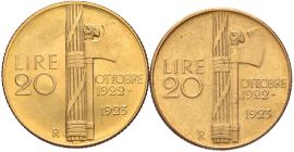 SAVOIA, DUE MONETE IN ORO DA 20 LIRE “FASCETTO”