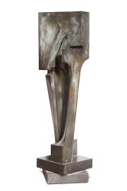 GIO' POMODORO (Orciano di Pesaro 1930 - Milano 2004) Marat, scultura volume bronzo, cm 180x60x60 eseguito negli anni Settanta L'opera è registrata presso l'Archivio Giò Pomodoro Il lavoro di Gio Pomodoro è ampiamente conosciuto in Europa, USA, Sud America, Israele e Giappone. Installato a Milano a metà degli anni '50, iniziò ad esporre nel 1954 nelle principali gallerie d'Italia: Galleria di Cavallino (Venezia), Galleria del Naviglio (Milano) e la Galleria dell'Obelisco (Roma), e poi nel corso della sua carriera alla Galerie Internationale (1961) Paris, Malborough Gallery (1967) a New York e Martha Jackson Gallery (1971) anche da New York. Ha anche partecipato più volte alla Biennale di Venezia (1956, 1962, 1984) e Documenta II a Kassel nel 1964 Nel 1996, si è tenuta a Firenze, la sua grande nella Sala delle Armi di Palazzo Vecchio.