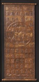 in pietra saponaria raffigurante scritte e ideogrammi; cm 30,5x68 (2)