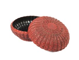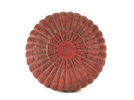 A CINNABAR LACQUER CHRYSANTHEMUM-FORM BOX AND COVER, CHINA, QING DYNASTY, 18TH CENTURY