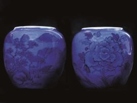 con sfondo blu, due con disegno floreale e paesaggio dipinto gli altri quattro monocromi; alt. da cm 5 ad alt. cm 3 (6)