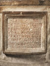 L’urna, ascrivibile ad una produzione urbana di buona qualità della metà del II secolo d.C., apparteneva ad Tito Elio Proculo, liberto dell’imperatore Adriano (117-138 d.C.). Questo individuo lavorava come segretario nell’officium admissionum della casa imperiale, l’ampio organismo che si occupava delle udienze dell’imperatore che erano divise in tre grandi gruppi: private, riservate a pochi e collettive. Quest’urna, inedita, si aggiunge al ristretto numero di monumenti di questi aiutanti di camera (CIL II 6107; XIV 3457; VI 4026; 8698-8702; AE 2007, n. 234), la cui funzione è peraltro nota grazie alle fonti letterarie (Svetonio, Vespasiano 14). Confronti per la forma; B. Borg et alii, Die antiken Skulpturen in Castle Howard, Wiesbaden 2005, p. 142, cat. 87-88, tav. 76; F. Sinn, Stadtrömische Marmorurnen, Mainz 1987, cat. 626 (tav. 91 d), 651 (tav. 95 e), 694.