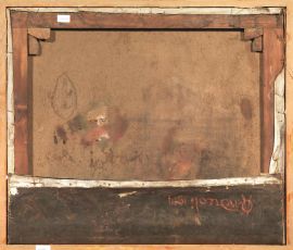 olio su tela, cm 78x90 (come attualmente incornicato), cm 97x90 (tela intera)