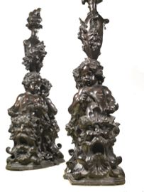 COPPIA DI GRANDI ALARI, VENEZIA, PRIMA METÀ SECOLO XVII, BOTTEGA DI NICCOLÒ ROCCATAGLIATA