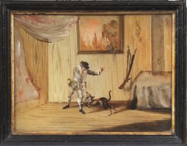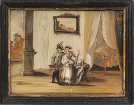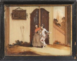 serie di quattro dipinti su vetro, cm 19x25 circa