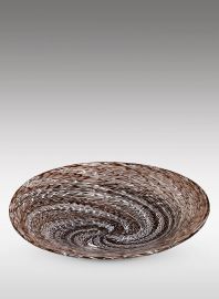 Clear glass internally decorated with a double texture of white and amethyst lace
