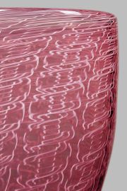 Vetro rubino decorato all'interno con merletto bianco, corpo a sezione ovale