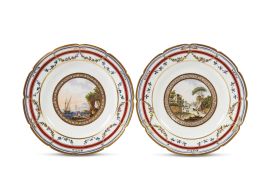 ASSORTIMENTO DI PIATTI DAL SERVIZIO DELLE VEDUTE DEL REGNO, DETTO DELL'OCA, NAPOLI, REAL FABBRICA FERDINANDEA, 1793-1795