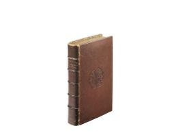 In 8vo piccolo (147 x 92 mm). 192, 24, [20] carte. Marca tipografica all’inizio e in fine, 139 xilografie nel testo, che è in corsivo. Pieno marocchino testa di moro con monogrammi di William Stirling Maxwell (1818-1878) impresso a secco ai piatti, dorso a nervi con titoli dorati, graziose dentelles floreali, sguardie azzurre con doppio ex libris di William Stirling Maxwell, tagli rossi Antica firma di appartenenza al frontespizio, assente l’ultima carta bianca, marginalia talora rifilati, qualche piccola abrasione alla legatura, per il resto copia molto buona.