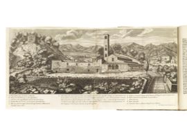 Buon esemplare stampato su carta forte, con incisioni freschissime, di questa opera che narra la vita di San Cresci, primo martire cristiano in Mugello. Cresci fu autore di una serie di guarigioni, grazie alle quali portò molte persone a convertirsi al Cristianesimo. Catturato infine dai soldati romani, fu decapitato e la sua testa infilzata su un’asta per essere portata trionfalmente a Firenze (la splendida antiporta raffigura questa scena in modo molto teatrale). Ma la testa di Cresci divenne così pesante che i soldati romani furono costretti a desistere e a seppellire Cresci ed i suoi sventurati seguaci in quel preciso punto, dove fu poi costruita la Chiesa di San Cresci. La chiesa e i colli circostanti, sono magnificamente ritratti nella tavola ripiegata, incisa da Antonio Lorenzini su disegno di Crescenzio Onofri, che aperta è lunga oltre 73 centimetri.