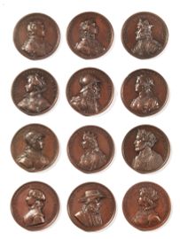 ITALY SAVOY. HOOD CONTAINING NINETY-TWO BRONZE MEDALS OF THE SAVOY FAMILY AND ILLUSTRATED BOOK BY G. GALEANI NAPIONE ENTITLED “STORIA METALLICA DELLA REAL CASA DI SAVOIA”, XIX CENTURY. RARE LOT IN HIGH QUALITY. ALL MEDALS ARE IN EF/UNC CONDITIONS