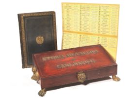 Nel lotto anche libro di G. Galeani Napione intitolato “Storia metallica della Real Casa di Savoia”, Stamperia Reale, Torino, 1828 (ed. originale). Sovracoperta in pelle con fregi e stemma in oro (cm 50x34x3).