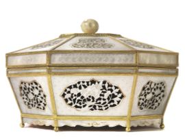 六边花卉纹贝母盒一对 清 十九世纪