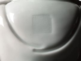 in porcellana bianca, seduta su trono di fior di loto e tenente nella mano sinistra uno scettro; alt. cm 47,5 con base