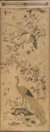 ricamato con volatili fiori e pavone; cm 51x135 (3)