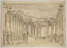 I rifiniti studi qui presentati sono una preziosa testimonianza della perizia di tale quadraturista nell'elaborazione di architture costruite attraverso una rigorosa intelaiatura prospettica e in grado di restituire ricercati effetti illusionistici.