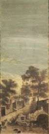 PAESAGGIO CON CAMPANILE, PASTORI E ANIMALI