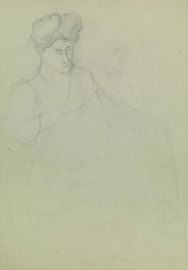 on the reverse: female figure sewing