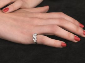 al centro un diamante taglio brillante di ct 1 circa, affiancato da sei diamanti taglio brillante per ct 0.60 circa, punzone PT 950, mis. 10, g 7