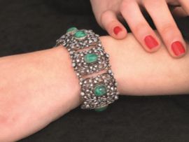 BRACCIALE STILE ANTICO IN ARGENTO E ORO CON SMERALDI E DIAMANTI