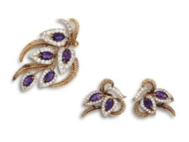 PLATINUM EARRINGS AND BROOCH WITH DIAMONDS