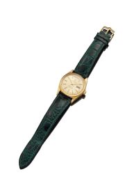 cassa oyster in oro giallo 18kt, fondello a vite, ghiera liscia, quadrante color champagne con rara scritta del rivenditore ufficiale “Tiffany”, marcato T Swiss T, cinturino in pelle con fibbia originale in oro giallo 18kt, vetro plastica, movimento a carica automatica. Diam. mm 36