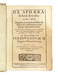 (Gravità - Idrodinamica) TORRICELLI, Evangelista. De sphaera et solidis sphaeralibus libri duo in quibus Archimedis doctrina de sphaera & cylindro denuo componitur. Florentiae, typis Amatoris Massae & Laurentij de Landis, 1644.