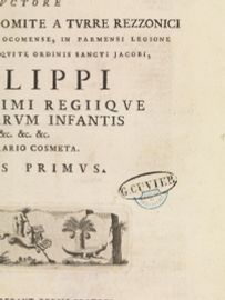 In folio (365 x 235 mm) in 2 parti. xii 308 pp. xxi, 432 pp. Ritratto calcografico del dedicatario Luigi Delfino di Francia, inciso da Gilles Edme Petit su disegno di Maurice Quentin de Latour, stampato a Parigi dalla vedova Chereau in antiporta, vignetta calcografica al frontespizio, ritratto calcografico di Ferdinando, duca di Parma, inciso da Francesco Zucchi (che in altri esemplari e in antiporta alla seconda parte), grande ritratto calcografico di Plinio disegnato da Pietro Perfetti a Q3v, altro piccolo ritratto a 2A3v e altre vignette calcografiche. Ex libris “Dampierre” della bib3ioteca dei Ducs del Luynes al contropiatto, timbri “G. Cuvier” e “Fred Cuvier” al frontespizio. Mezzo vitellino coevo, dorso a nervi con doppio tassello in marocchino rosso e verde, altri scomparti riccamente decorati in oro, tagli rossi. Tracce d’uso alla legatura, per il resto copia molto buona.