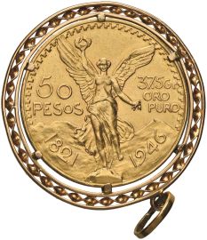 MEXICO 50 PESOS Au gr. tot. 50,47 (with mount)
