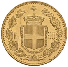 SAVOY UMBERTO I (1878-1900) 50 LIRE 1884 Rome Au Rare EF