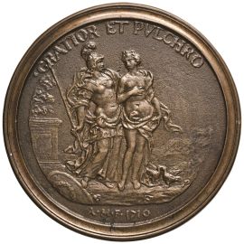 Ae mm. 60 D/ Busto a d. R/ Minerva e Venere stanti affiancate. Esergo AM F 1710 Vannel-Toderi II, 219-21