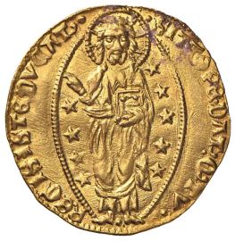 D/ MIChAEL STEN S. Marco porge il vessillo al Doge genuflesso R/ Il Redentore, circondato da stelle, entro aureola ellittica Au gr. 3,55 Mont. 143