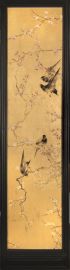 su cartone raffigurante rami fioriti con volatili, reca marchio in basso a destra; cm 176x40 (2)