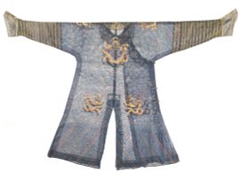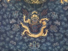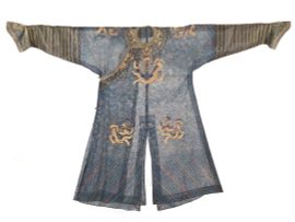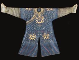 清十九世纪 蓝缎绣金龙纹袍