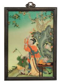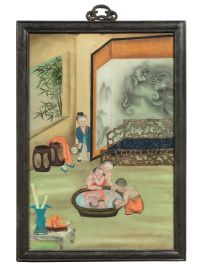 GRUPPO DI TRE DIPINTI SU VETRO, CINA, SEC. XX