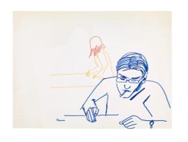 pennarello su tovaglietta arancione di carta, cm 27x38