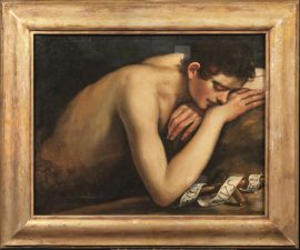 "Il soggetto, che fu tra i più amati di Caravaggio, già di per se ci riporta all'ambiente romano e alla cerchia dei pittori che lo imitarono. Il modo originale, privo di soggezione, di rappresentare il Santo, abbandonato in una posa inconsueta e rivolto al cartiglio dove la scritta che lo riguarda prefigura la passione di Cristo, con il busto visto da pittore naturalista e il lungo braccio articolato con particolare attenzione per assecondare la posa informale, sono caratteristi del pittore Tommaso Salini, seguace e amico di Giovanni Baglione e oppositore di Caravaggio nel famoso processo del 1603.
