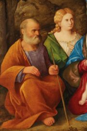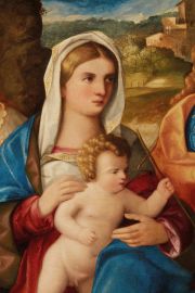 La provenienza dalla galleria Soranzo di Venezia, non altrimenti documentata, è riportata dall’iscrizione al retro della tavola e ripetuta nel catalogo di vendita Christie’s del 1931, cui si riferisce anche il codice alfanumerico al retro. Un dipinto attribuito a Palma il Vecchio corrispondente al nostro per descrizione fu venduto a Cheltenham nel 1859, dalla collezione di Lord Northwick.