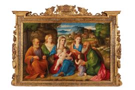 THE HOLY FAMILY WITH SAINTS IN A LANDSCAPE