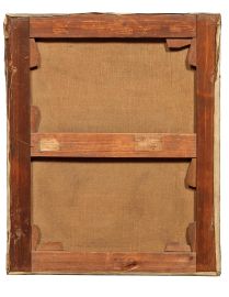 on the reverse: two collection labels on the stretcher