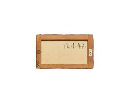 The still life as a genre accompanied Picasso’s expressive development through the entire first half of the 20th century: it provided constant occasions for experimentation and a test bench for the artist’s spatial and materic Cubist research, from the papiers collés and the assemblages of recovered materials to the analytical and synthetic Cubist drawings and paintings of the first decade of the 1900s and to the compositions of the 1920s informed by a renewed “neoclassicism”. An “abstracting” geometric linearity marks these of Picasso’s works but, as Wassily Kandinsky had remarked in his Concerning the Spiritual in Art a propos of those Cubist experiences, Picasso, although dissecting the exterior aspects of things, had no intention of divorcing himself from their real and material presence. Our painting is dated on the back: 12 January 1944. With WWII still in full swing, in a Paris still occupied by the Germans, Picasso worked at the huge atelier in Rue des Grands-Augustins, where he painted views of the city and still lifes of simple, ascetic objectivity. Through ideographic schematization, with which he had already experimented in such “surrealist” compositions as Night Fishing at Antibes (1939), he reduced his forms to pure ideograms, bridled by a strong outline sign. Four years after painting our still life, he painted Cuisine (The Kitchen) (first version: oil on canvas, 1948; New York, Museum of Modern Art). This important post-war work may well be considered the apex of the evolutionary development of a series of paintings on the subject of the table “set” with objects and realistic/decorative presences evoked in the setting of the kitchen or the dining room: metaphors for the painter’s studio and his work as part of his vital and impassioned relationship with reality. But while, in Cuisine, the schematic made of linear signs has fully replaced the “object” dimension, and the “figure” that runs through the entire canvas is an elastic labyrinth of force lines, in our painting the objects stand on the round plane of the table as a sequence of elements bound by an outline sign similar to the lead of stained-glass windows. And this research likens the painting to the 1948 Still Life with Melon, in tempera and oils on plywood (Turin, Galleria d’Arte Moderna e Contemporanea), to which our Still Life may be considered very close, pictorially speaking. A vibrant blue background, rendered with a closely-packed parallel brushstrokes and cross-hatching, fills every empty space around the fulcrum of the composition, highlighting the white plane of the table surface on which several pieces of fruit and a few other objects are set. The brushstroke is clearly visible, materic and regular, as though the painter had poured a constant, measured flow of energy into laying down repeats of elementary but vivid, tiny “chalk” marks to fill the space of the canvas with luminous chromatic “substance”. The artists seems to recover Henri Matisse’s arabesque line and to tangle it with the abstract-geometric rigour of the flat planes and two-dimensional sections. The profiles of the objects stand out clearly and adapt the sequence of elements to the rather narrow but elongated format of the canvas. What dominates here is a fixed schematism in a canvas from which mimetic details are subtracted: the table covered with a white cloth, an orange, a pear, a glass and/or a pitcher of water, perhaps a basket. The presences are materialised as “signs” of a disarming decorative poverty, drawn by overturning the perspective depth on the plane, uniting the abutting or superimposed volumes in geometric lines, making it clear that the search for abstraction is intentional. Picasso’s use of primary colours, yellow, red, blue, their purity on occasion muddied or resonating with the white, manifests the painter’s need to reduce the notation to a few, accented, fundamental chords.